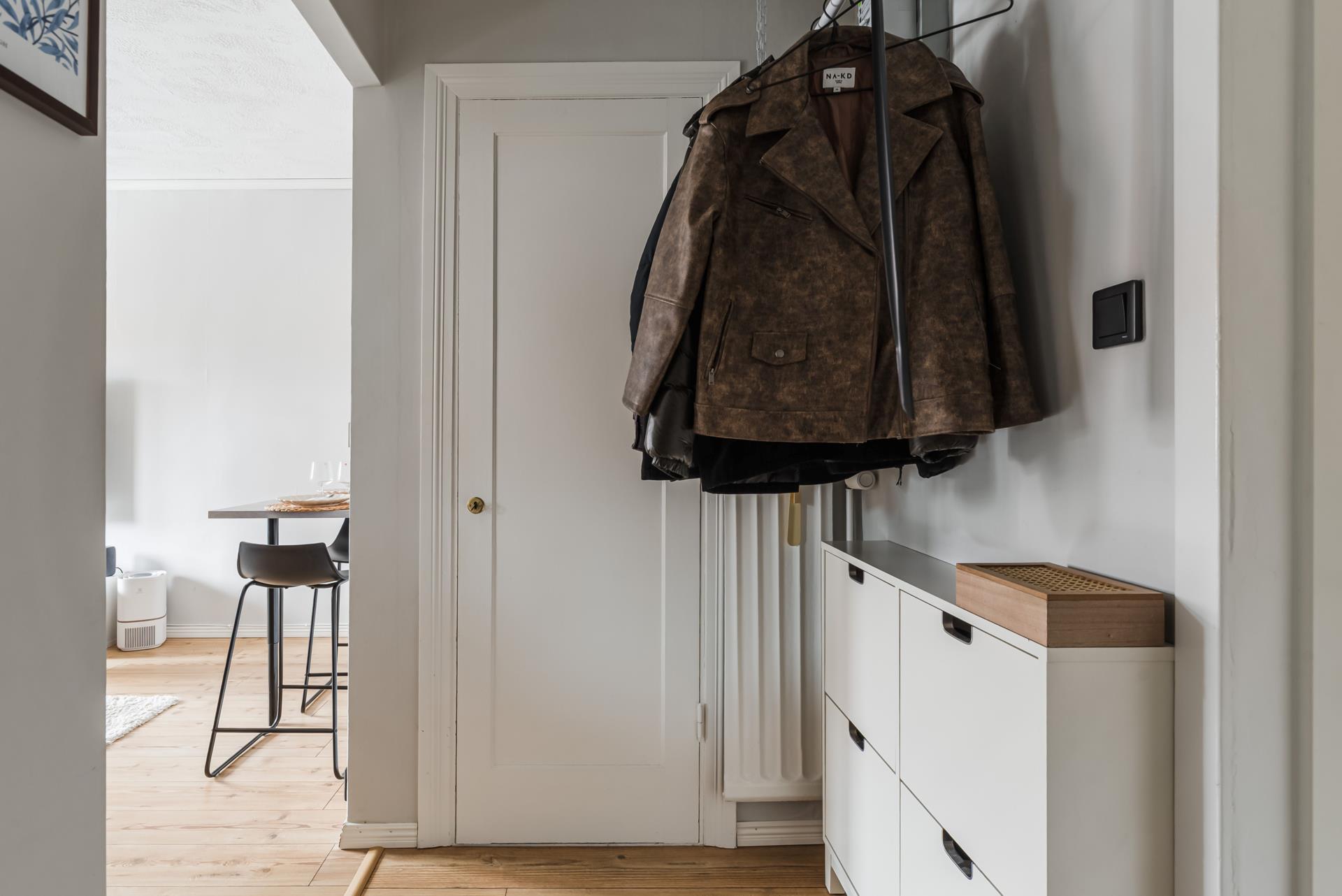 Bostaden erbjuder ett luftigt vardagsrum med fint ljusinsläpp som ger en härlig rymd och en inbjudande atmosfär. Här finns gott om plats för både soffgrupp och matplats för dig som tycker om att umgås. Från vardagsrummet når du den trevliga balkongen i solläge – en perfekt plats för morgonkaffet eller avkoppling under soliga dagar.